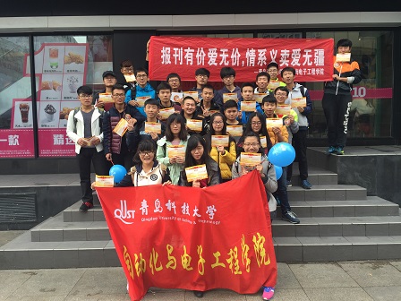 电信152班在台东步行街积极参与青岛早报的“读早报晚报做微尘”爱心报纸义卖活动。