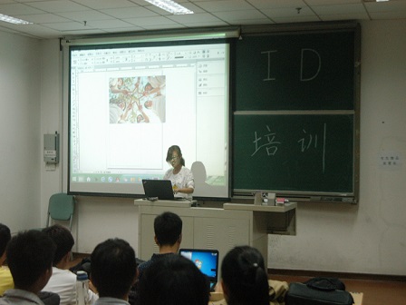 汤梦霞部长首先向干事阐述了ID在现代存在的必要性;随后,她从多个方面进一步讲解了ID软件的不同类型、使用方法,并向在场的干事展示了学院的院刊,现场的气氛骤然间上升,极大地调动了干事的兴趣积极性。最后,汤梦霞“趁热打铁”,现场制作了一个电脑报,运用了多个页面排版,赢得了场下的阵阵掌声。