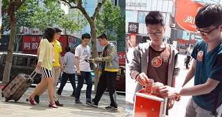 测控1、2、3班的28名同学在台东步行街集结,他们手拿《青岛早报》、《青岛晚报》,向过往市民介绍“微尘”基金并进行报纸的爱心义卖。尽管当天青岛的气温较高,但依然无法阻挡青科大“微尘”们奉献爱心的热情,他们踪迹遍布台东步行街。前来购买报纸的有行色匆匆的上班族,有在此地遛弯的老者,还有带着孩子的年轻父母,甚至他们有的只是捐出善款不要报纸。他们充分肯定了青科大学子的志愿服务精神,对爱心义卖活动给予了高度评价,并纷纷表示此次活动加深了自己对“微尘”基金的了解,在今后的生活中将尽己所能做岛城的一粒“微尘”。