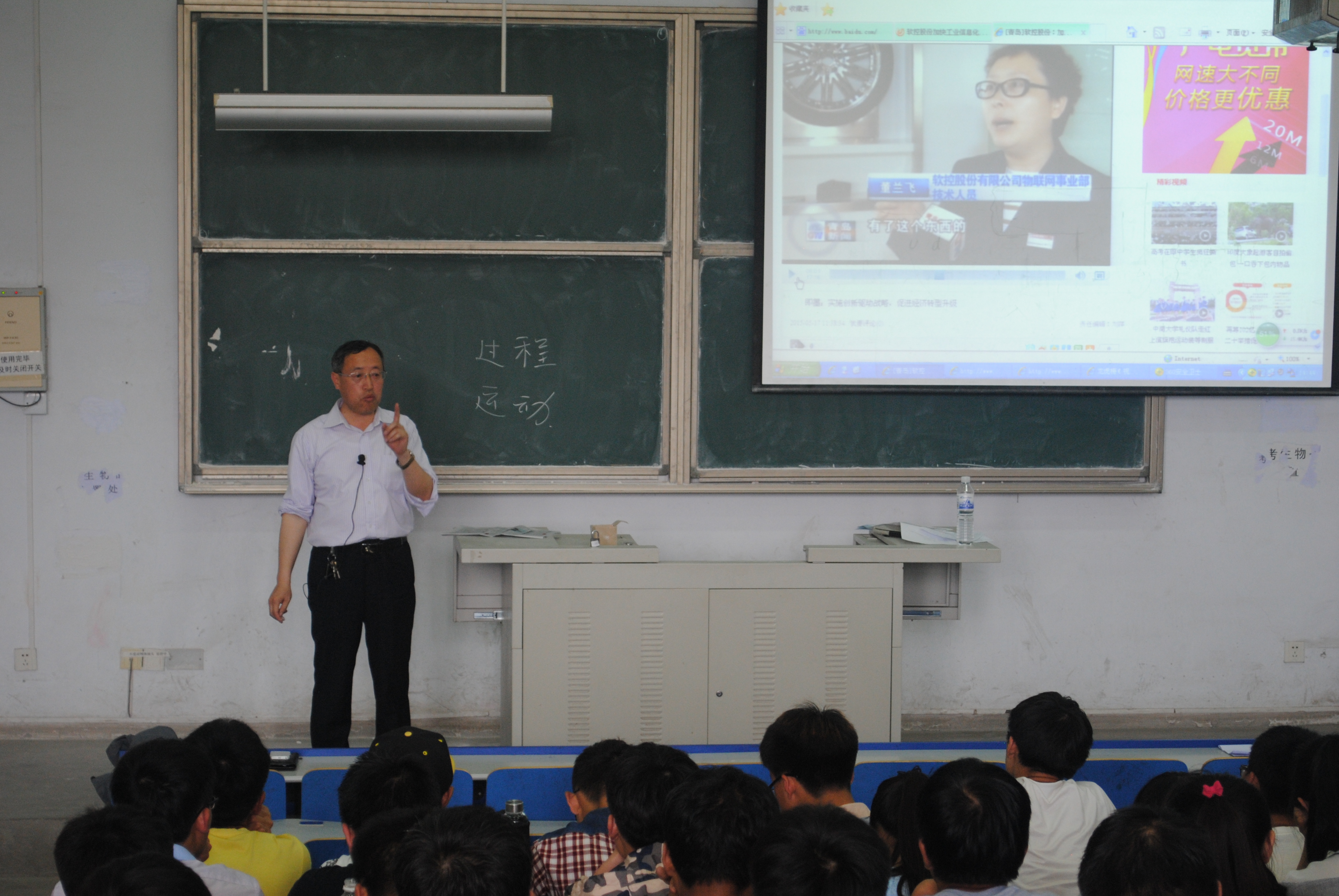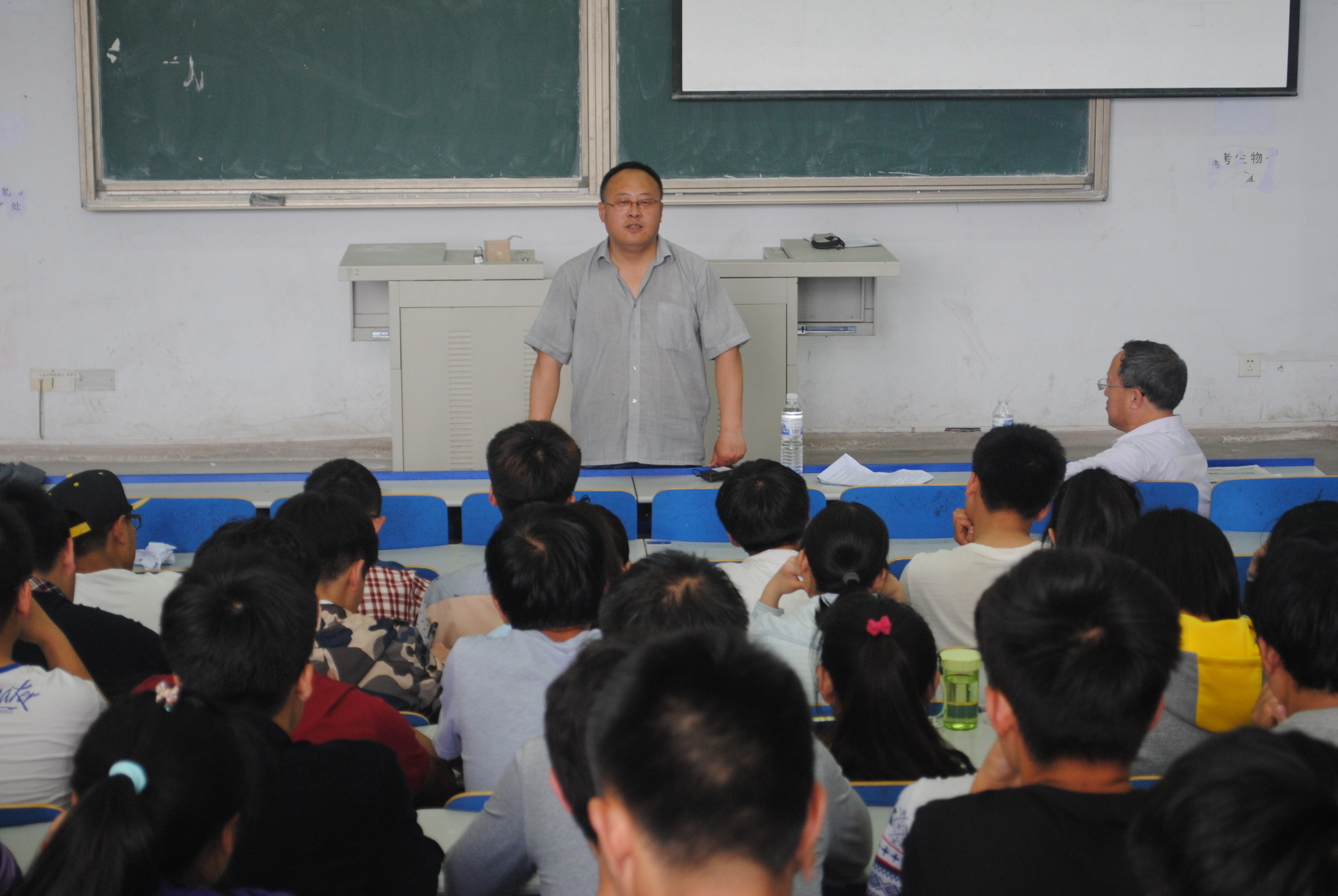 党总支书记刘同刚老师、教学办夏国良老师在弘毅楼E401为大一学生举行“形势政策与教育”专题讲座。