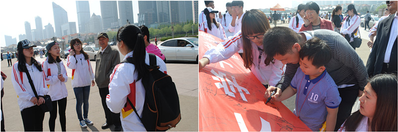 青年学生们通过海报、宣传单等形式向来往民众讲解五四运动的由来及意义,宣传五四“爱国、进步、民主、科学”的核心精神,倡议青年民众规范个人行为,增强责任意识,传递共筑“中国梦”正能量,担当共筑“中国梦”的突击队,争做共筑“中国梦”的主力军,展现了新时期当代青年学生的主人翁精神。