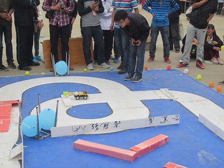此次比赛共有各兄弟学院的13支队伍参与,并有四方校区学生会副主席与各学生会主席出席比赛。此次比赛共分为三部分,分别是搬运工、大回环赛道和迷宫推球。搬运工需要机械车自己夹起木块运至终点,大回环赛道需要机械车在跑赛道途中扎破所有气球,而迷宫推球需要机械车推球绕过障碍到达终点。比赛难度逐渐增加,亦愈发精彩。最终飓风战队突破重围,斩获冠军一等奖。