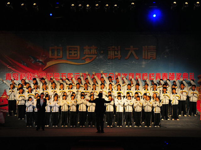 纪念五四运动94周年合唱比赛暨榜样青春颁奖典礼在崂山校区体育场举行,自化学子以一曲《我的未来不是梦》得到了评委的一致肯定,勇夺合唱比赛一等奖,学院刘凯同学斩获最佳指挥奖。
