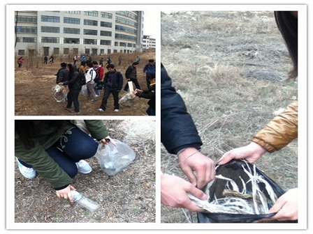 在经历了近一个小时的清扫活动后,同学们都“收获颇丰”,但是看着整洁的共青团林,大家纷纷表示“累,但是觉得很高兴!”
