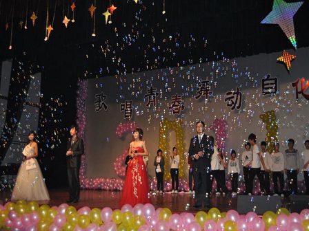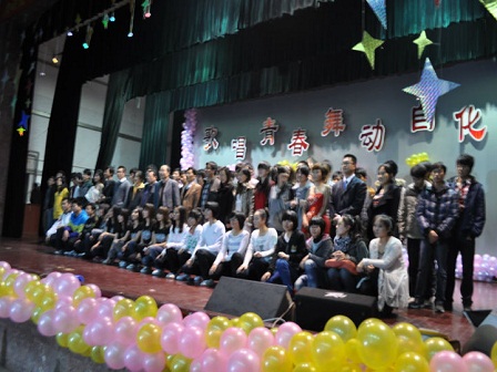 领导张景瑞、刘喜梅、童刚、赵彤、肖强,后勤处副处长郑少军,党委宣传部马寒以及各兄弟学院分团委老师,学院2011级全体同学共同观看了晚会。