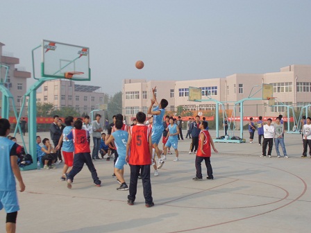 早上八点战鼓雷响,双方球员跃跃欲试,简单的热身后比赛开始。身穿红色球衣的是电气1、2班,身穿蓝色队服的是电气3、中法班。双方球员你来我往,比分咬的很紧,观众席上不时传来叫好声。精彩的时刻总是过得很快,双方球员脸上洋溢着骄傲的倔强,比分落后的斗志昂扬,比分领先的也毫不松懈。半场过去比分一直僵持不下。第四节球员显然有些体力不支,进攻、防守显然有些变慢处于落后的红方依旧不肯放弃,23:25。关键时刻红方一个三分将比分反超,场上再一次沸腾。比赛剩下最后两分钟,蓝方连续得分,红方一度处于下风。哨声在一度响起,比赛以28:31结束,蓝方获胜,红方虽失败也不沮丧,双方球员相互拥抱,尽显友谊。