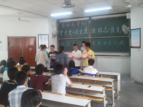 中午12点半,参加会议的人员全部到齐,主持人宣告颁奖典礼开始。首先,主持人带领大家回顾了木牛流马机器人大赛的整个过程。从两个月前提出这个有创意的想法开始,学生会秘书处成员就将想法付之于行动。完善策划,细化比赛环节,宣传比赛理念,寻找老师的辅导和帮助,给参赛队员提供实验室和指导老师的帮助···再经过初赛、复赛、决赛,最终从十几只队伍中决出了七只优秀队伍分获各奖项。其中,一等奖为逆流的鱼,二等奖为神马组合,三等奖为流云,最佳创意奖为机器侠,优秀奖为霹雳的旋风、朝气蓬勃、BROS。此后,秘书处秘书吕继翔还宣布木牛流马大赛将作为秘书处的一个固定活动,为每届学子提供展现自我的舞台。