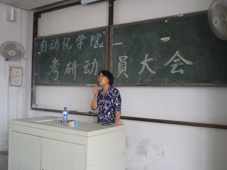 下午3点,动员大会正式开始。首先,学院领导对本届就业情况进行了分析,主要内容是今年就业考研所面临的机遇和挑战、我们本届毕业生的总体优势和劣势、分层就业思路的选择、就业思路的确定、考研心态调整等。关于就业挑战,刘院长谈到市场的供求矛盾,金融危机的后续影响以及国防单位就业市场的变化,希望同学们能认清严峻的挑战,做好自己的未来规划;谈到用人单位对学生的要求,在校的学业成绩是用人单位的基本要求,实习经历以及单独承担项目的能力,心理承受能力等是用人单位聘用的另外考虑因素;另外,学院领导还强调,随着国家对大学生就业的关注日益增加,金融危机的逐渐复苏,航空航天事业的蓬勃发展,大学生有了更多的发展机遇和就业岗位,但同时,这些岗位也对大学生提出了更高的要求,不仅要求技术和才能过硬,学历要求也提高了许多。希望大家在能进一步的深造,在尽可能的在学校里打好坚实的基础,为未来的发展提供丰厚的底蕴。随后,院长和副院长结合去年一年的我院考研工作,与同学们交流了就业考研过程的心得,指出就业要充满自信,考研贵在坚持,并且重点嘱咐同学们要注意身体,多做运动增强体质。