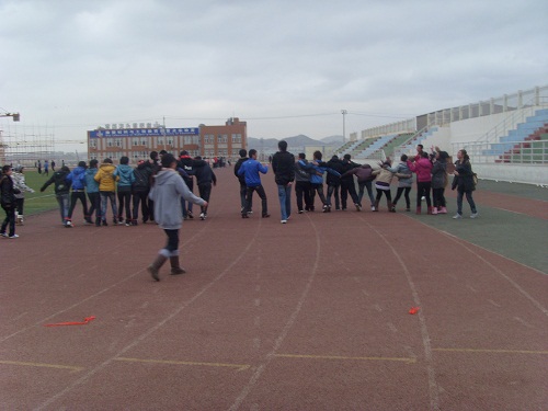 活动开始前两个班级同学都进行了精心准备,提前联系了参加活动的两班同学。下午两点,两班同学都按时到场,活动在主持人幽默的开场白中拉开了序幕,有趣而又激烈的班级游戏使整个活动达到了一次又一次高潮,操场上不时传来同学们的鼓掌声、欢笑声。现场气氛最活跃的要数踩气球了,男生每人脚上绑两个气球,由对方女生发起进攻踩男生脚下的气球,男生保护气球。最后那对保留的气球多那队获胜。一声开始女生就像男生发起了进攻,男生跑女生踩得场面真是不亦乐乎。两个小时很快就过去了,活动逐渐接近尾声,最后,此次活动圆满落幕。