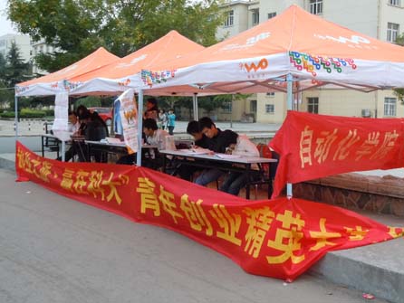 为深入贯彻落实科学发展观,进一步加强大学生文化素质教育引导我校青年学生按照建设创新型国家及新世纪科技进步的要求,崇尚科学、追求真知、勤奋学习、锐意创新、勇于实践、发奋成才、迎接挑战,培养学生的创新意识、创造能力和创业精神,浓厚校园创业氛围,特此举办此次活动。此次活动各学院需选拔推荐2个以上创业团队参加全校初赛。各参赛团队自行组织团队成员,每个团队可由3—7人组成。同时允许个人报名,在参赛过程中组建团队。10月18日,科技创新协会成员在小五四北即大赛报名现场积极为报名工作提供服务,他们热情的为前来报名参赛的团队提供服务解答疑问,得到了创业联盟的认可。