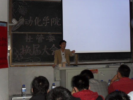 党总支副书记兼副院长肖强老师、分团委副书记刘明森老师、社管委秘书长赵玉言老师,周尧、张君波、王辉辉老师,以及校社管委和各个学院社管委代表,参加大会的还有各个协会负责人及全体社员。