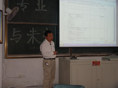 下午三点,主持人宣布讲座正式开始。首先,主持人对赵老师做了简单的介绍,然后,在同学们的热烈的掌声中,赵老师走上了讲台。赵老师喜欢随和,讲课时也不郑重地站在讲台上,语气沉稳。他首先为我们介绍了与电气专业相关的包括必修选修在内的相关课程,课程涉及内容广泛,从大一到大四,赵老师为同学有条不紊地讲来。然后,赵老师又为我们介绍了考研以及找工作等与毕业相关的事宜,他说“只要自己学好,就不愁没有饭吃,电信在自动化四个专业中虽然是不大好找工作的,但是,将来自己的成功与否,还是要看自己”。赵老师讲得极为恳切,话语和眼神中流露出慈师对我们的期盼。