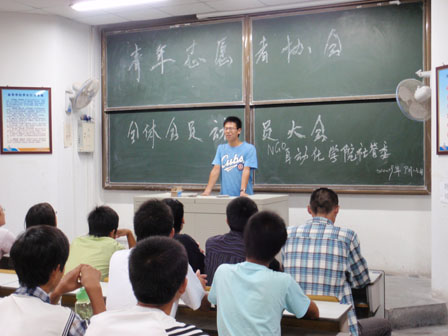 9月13日晚6:30,青年志愿者协会在一教401召开全体会员动员大会。社管委主席王辉辉、副主席汪骏康出席了此次会议。