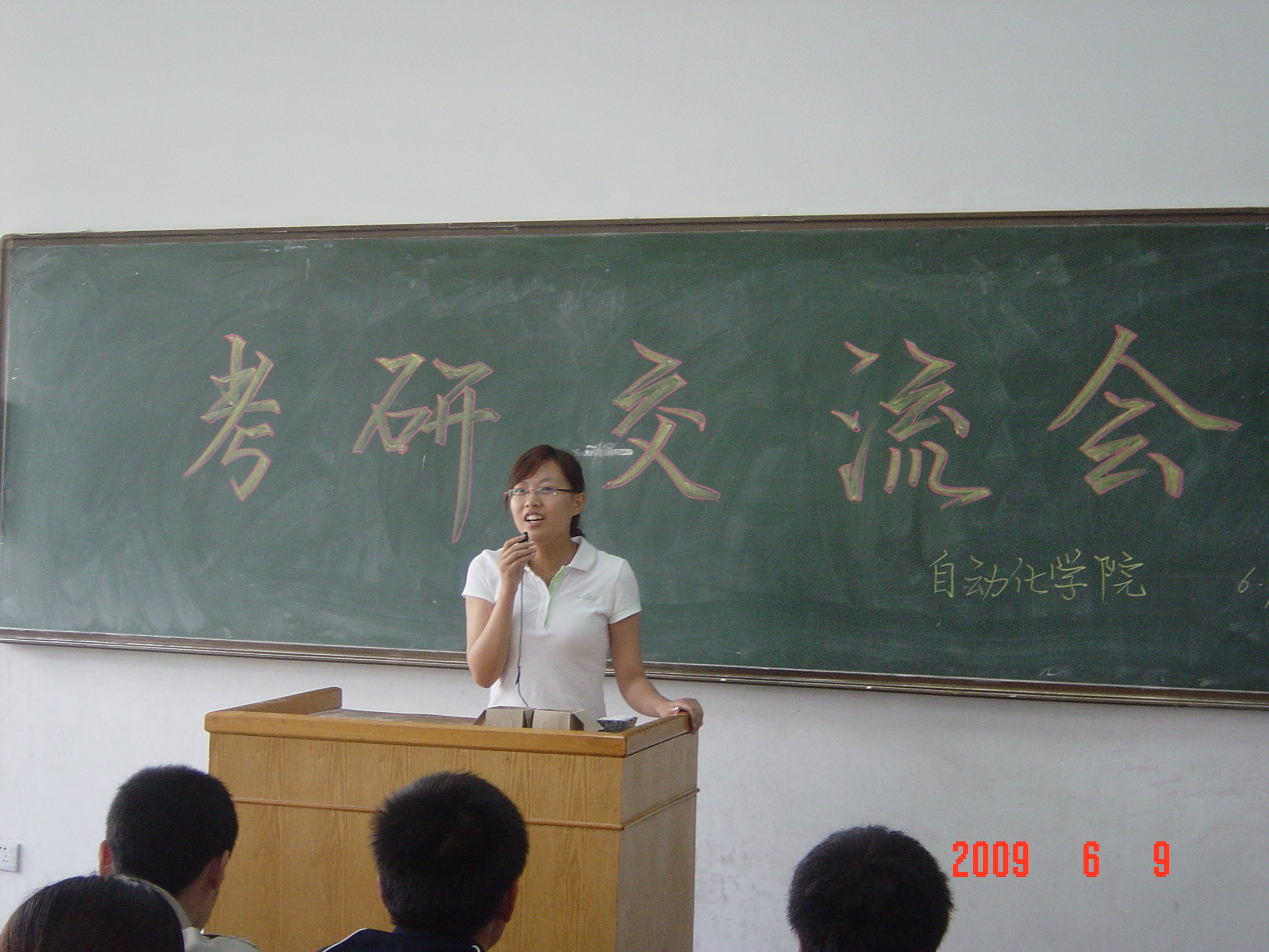 6月9日下午4:00,自动化06级在一号教学楼307教室举办了考研交流会。应邀进行经验交流的有09届考取研究生的学生代表于山山,毕慧博,翟敏,刘嘉,李军强,马铁军同学,自动化06级有意考研学生近100人参加。交流会由学院分团委书记曲斌艳老师主持。