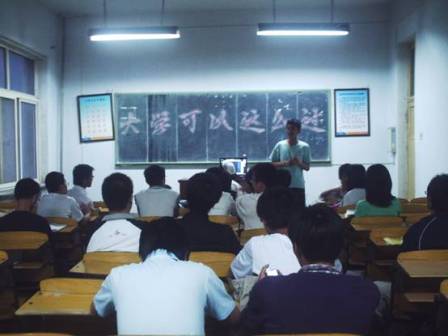 班会组织者刘文龙简略的开场后,大家一起看了几段新东方俞敏洪和阿里巴巴马云的关于创业、奋进的立志视频。这几段视频引起了大家的强烈共鸣,并引起了同学们热烈的讨论。王正磊和刘文龙分别谈了自己的感受,班长张东辉最后总结:号召大家不要颓废、虚度光阴,要努力、奋进,找准自己的人生目标,有所追求。