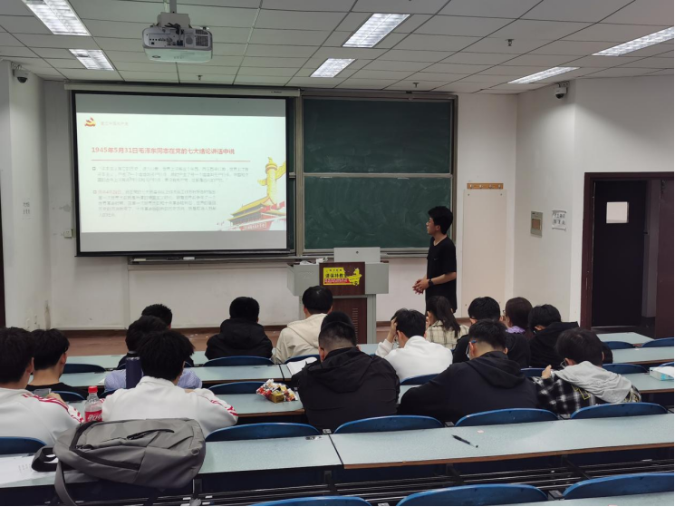 本次活动由团支部成员王海洋组织进行,通过幻灯片向大家展示了中国共产党百年发展历程。分别从中国共产党的建立、中华人民共和国的成立、改革开放和中国特色社会主义事业的发展三个时期讲述中国共产党的初心和使命。