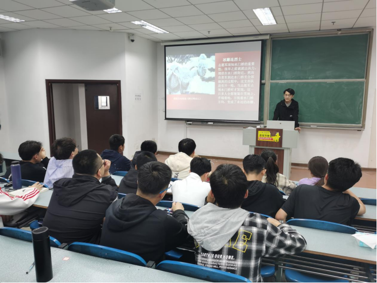 团支部成员苏琰智以幻灯片的形式向大家介绍了关于长津湖战役的历史,带领大家深入了解了志愿军是如何在后勤物资匮乏、武器装备落后的情况下战胜美军,取得战役最终胜利。