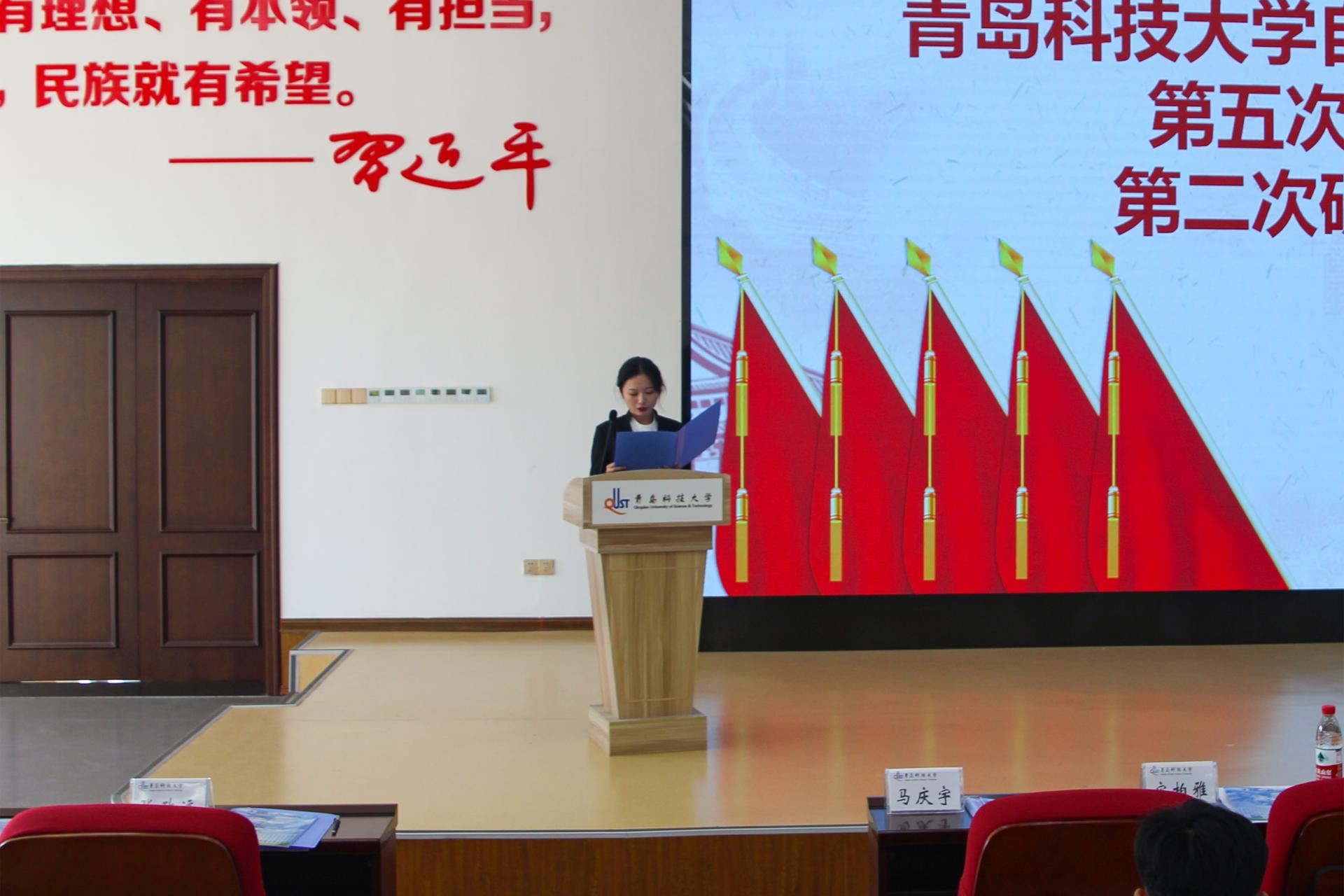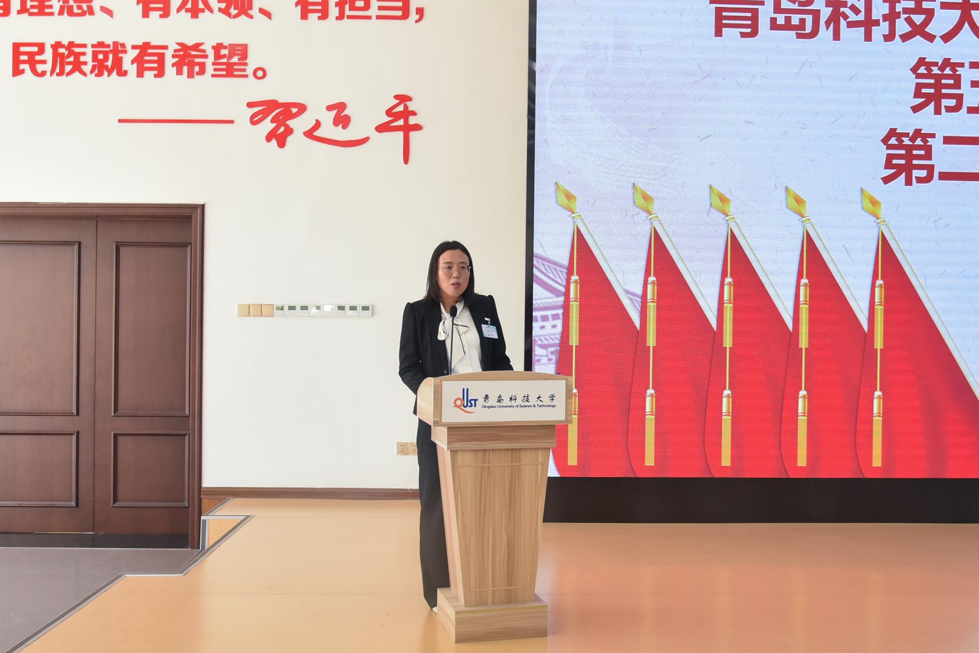 团委书记兼学工办主任郭蒙蒙向大会召开表示祝贺,向学院青年致以亲切的问候,并指出全体代表应同心协力,以饱满的政治热情和强烈的责任感,认真履行好自己的职责,集中精力开好这次大会,集思广益、群策群力,集中精力开好这次大会,圆满完成大会的各项议程。