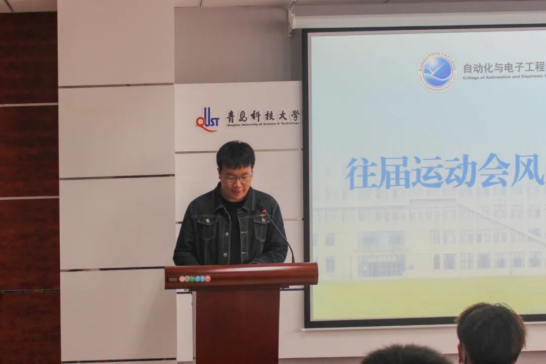 我院在往届校运会上曾获得第四名、精神文明奖等好成绩,庄可鑫同学图文并茂向全场介绍往届运动会风采,鼓舞我院学子以全新的姿态和更加饱满的热情在本届运动会上勇夺佳绩。