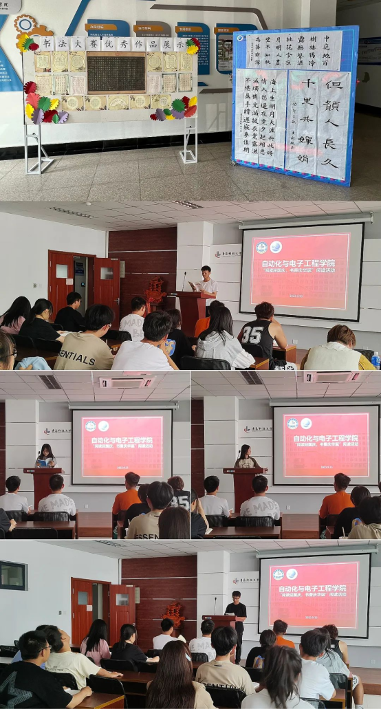 以一幅翰墨书香尽显赤子之心歌颂最伟大的祖国。撇捺凝心,翰墨飘香,“自”家学子通过或厚重雄浑、或大气脱俗、或苍劲有力的书法作品表达对祖国的赤诚之心与衷心祝愿,彰显中华文字的魅力,书写青年学子的时代精神与青春风貌;在阅读中体悟家国情怀,品味中华文化,学院举办“阅读迎国庆,书香庆华诞”阅读活动,同学们手捧红色经典书籍,传承先辈精神力量,在交流中分享读书的心得与体会,增强民族信念,赓续红色基因。