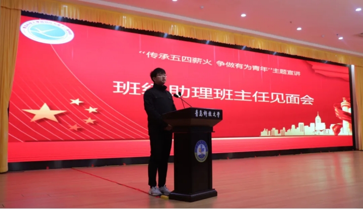 于崂山校区第二报告厅举办“传承五四星火 争做有为青年”五四宣讲教育大会暨优秀学团干部颁奖大会,学生工作处教育管理科科长郭蒙蒙、笔趣阁