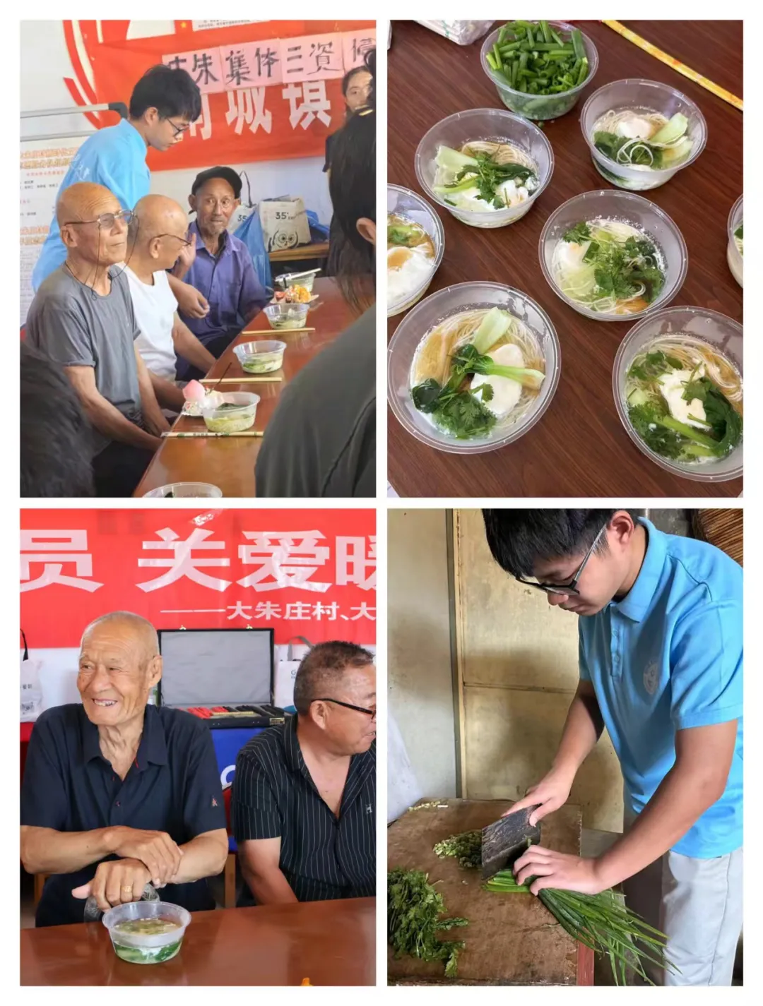 为了给当地老党员过一次集体生日,志愿者们与当地村委会一起准备了蛋糕、西瓜,并亲自进入后厨为老党员同志们制作长寿面。村中的老党员们齐聚一堂,在生日歌的快乐氛围中吹灭蜡烛,志愿者们也纷纷对老党员送上了自己的暖心祝福。此外,当地居委会还为老党员们提供了免费的理发与视力检查的服务。这场特殊的生日会更是表现了社会各界对基层老党员的密切关照。