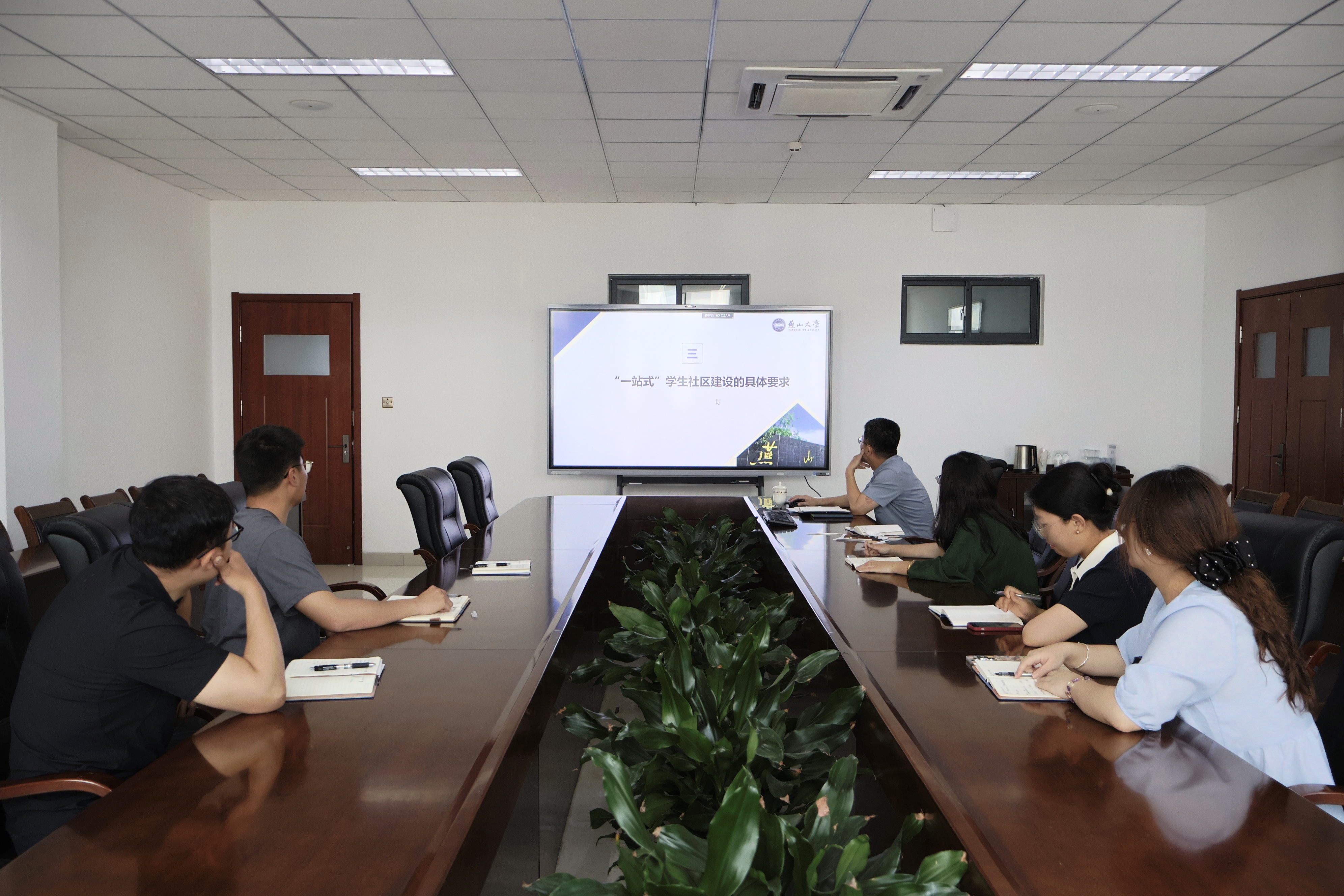 组织召开“培训归来话收获”一站式学生社区建设专题培训交流会。学院党委副书记兼副院长刘名森结合参加《高校“一站式”学生社区综合管理模式高质量建设线上线下一体化专题研修班》的学习成果作专题汇报,“融·界”一站式学生社区建设项目组成员、学院全体辅导员参加会议。