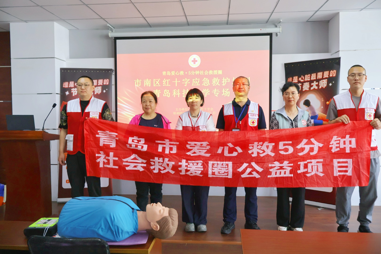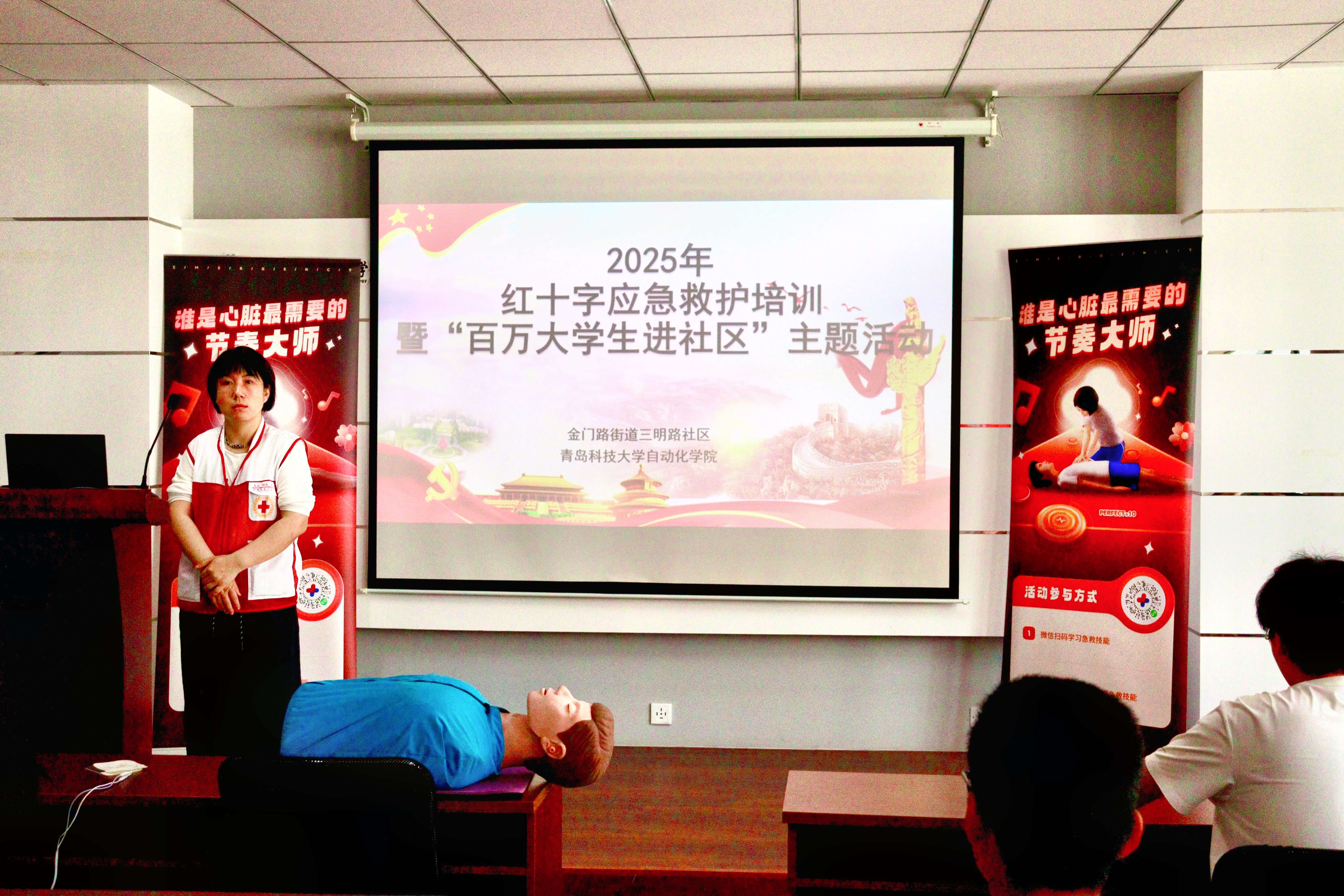 于学院楼410会议室组织开展大学生应急救援专题培训。此次培训特邀青岛市市南区红十字会资深救护培训师袁辉丽担任主讲,系统传授专业救护技能,学院百余名学生代表参与培训。