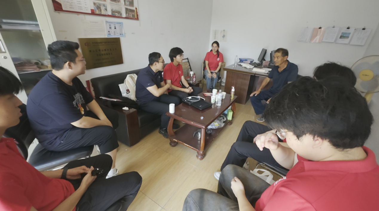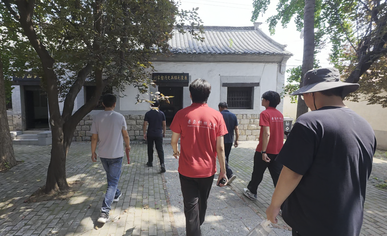 刘家台村作为博山区有名的红色村落,有着深厚的革命历史底蕴。宣讲团首先来到村委会,与村党支部书记刘书记及其他村干部展开深入交流。当问及村里的经济情况时,刘书记向我们讲述到,“村里和外面已经不进行买卖了,咱们村子里的老人们都很朴实,平时做做农活,种点玉米和地瓜。” 刘书记还介绍了近年来村里依托红色资源发展文旅产业、带动乡村振兴的实践成果,从红色故事到发展蓝图,让同学们对“红色基因如何赋能乡村发展”有了直观认识。访谈中,队员们认真记录,不时提问,将村落发展与红色传承的关联细细梳理。