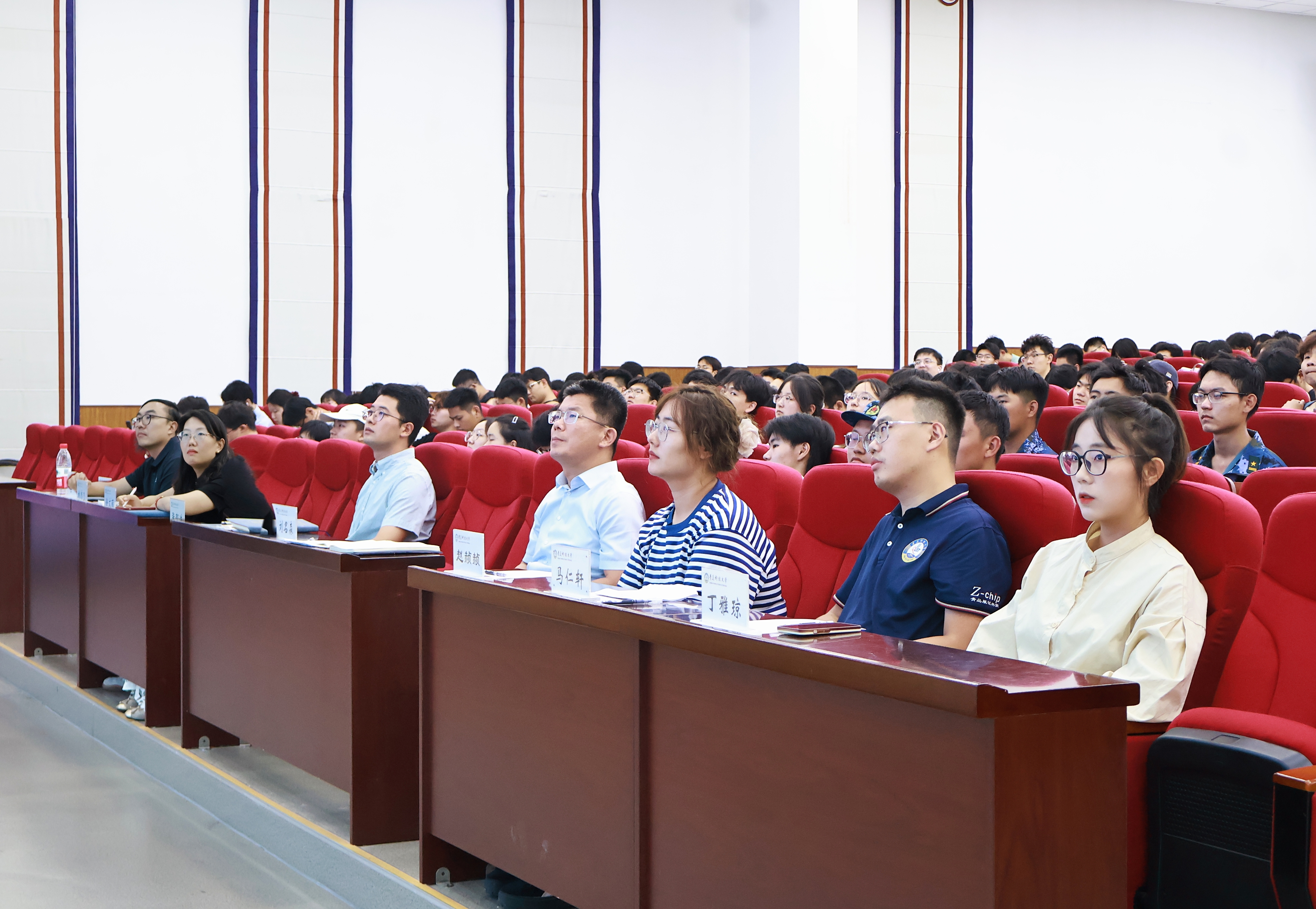 在崂山校区北苑团学报告厅召开了宿舍舍长大会暨“AI家雅舍”创建启动仪式。学院党委副书记兼副院长刘名森、全体专职辅导员以及全体本科生、研究生舍长近400人参加了本次活动。会议由学院团委副书记兼学生工作办公室副主任张郁浩主持。