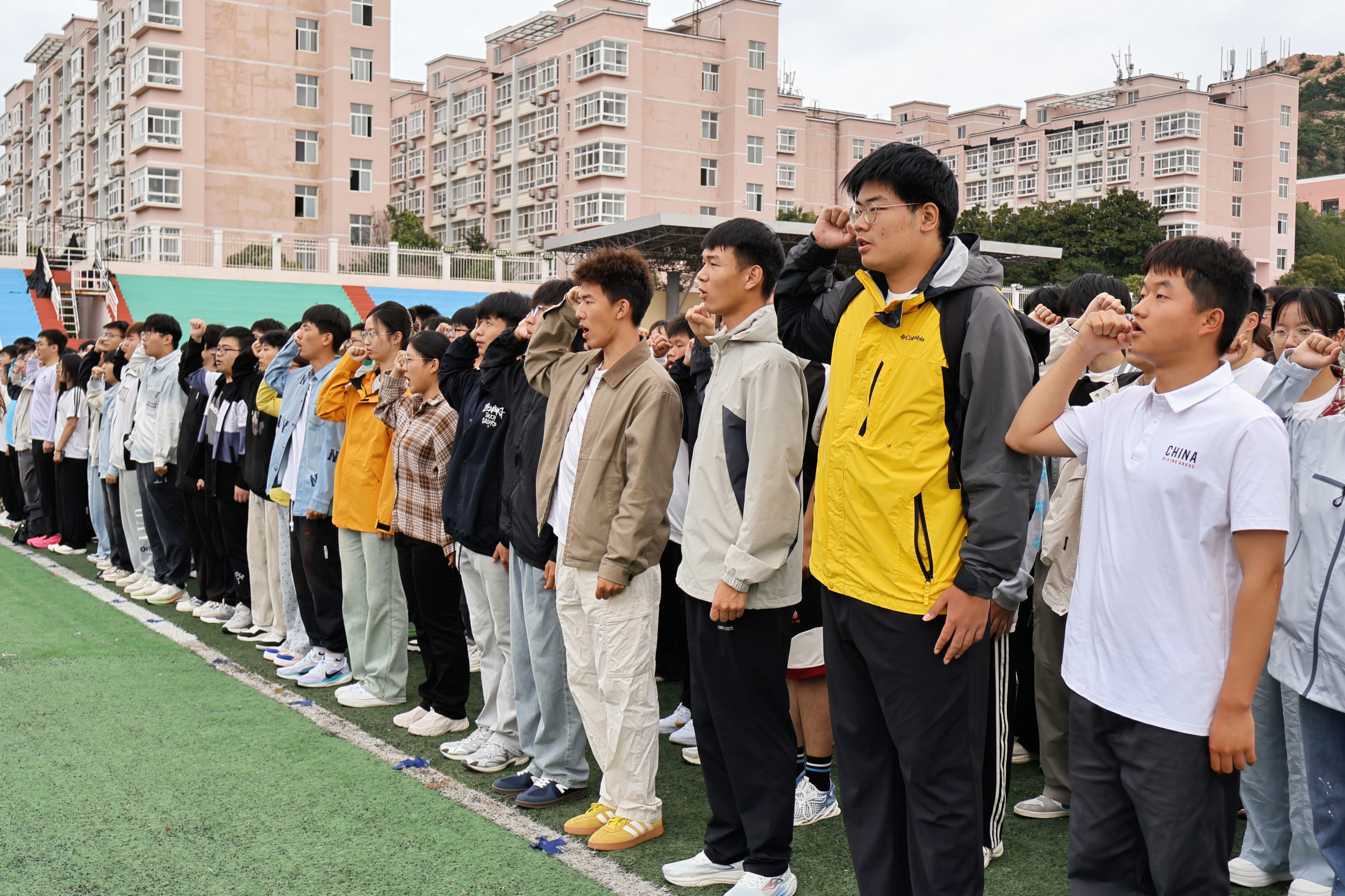 全体师生在国旗下庄严宣誓,铮铮誓言,字字铿锵,“在此,我们以青春的名义,面向国旗庄严宣誓:铭记历史,不忘初心!砥砺奋进,斗志昂扬!强国有我,青春挺膺!”