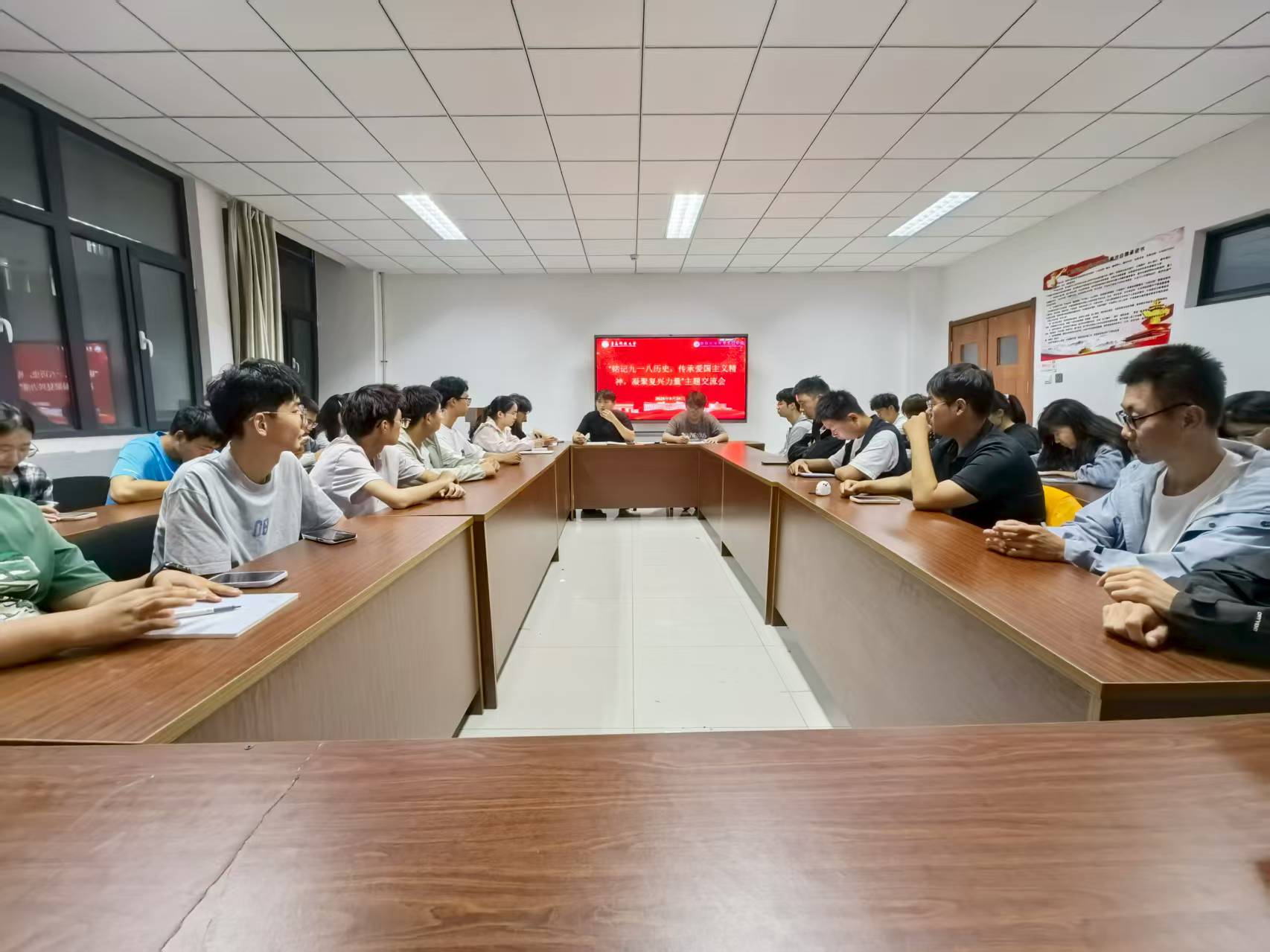 在学院楼410会议室举办“铭记918历史,传承爱国主义精神,凝聚复兴力量”主题交流会,各年级学生代表参与活动。