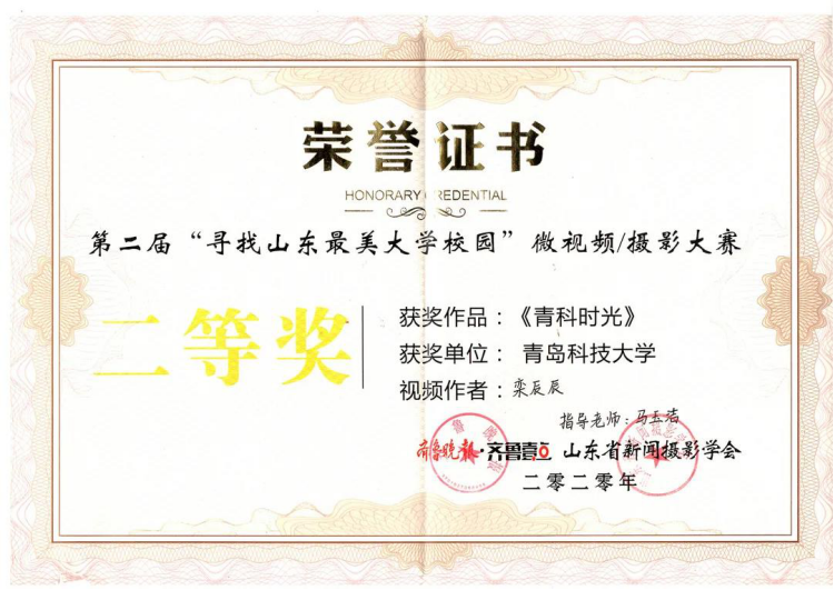 学生栾辰辰的短视频作品《青科时光》获得短视频二等奖。