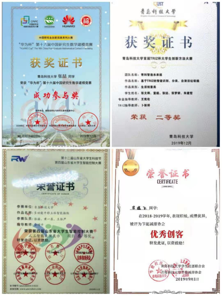 他们在科创之路勇攀高峰,斩获智能技术应用一等奖1项;高校机器人大赛三等奖1项;大学生创客大赛三等奖2项;大学生创客大赛二等奖2项;智能控制 三等奖1项;优秀创客证书;数学建模省一等奖2项;数学建模国家三等奖1项;研究生数学建模成功参与奖1项;IOn科技先锋,掌握单片机,程序编写焊接多个技能。