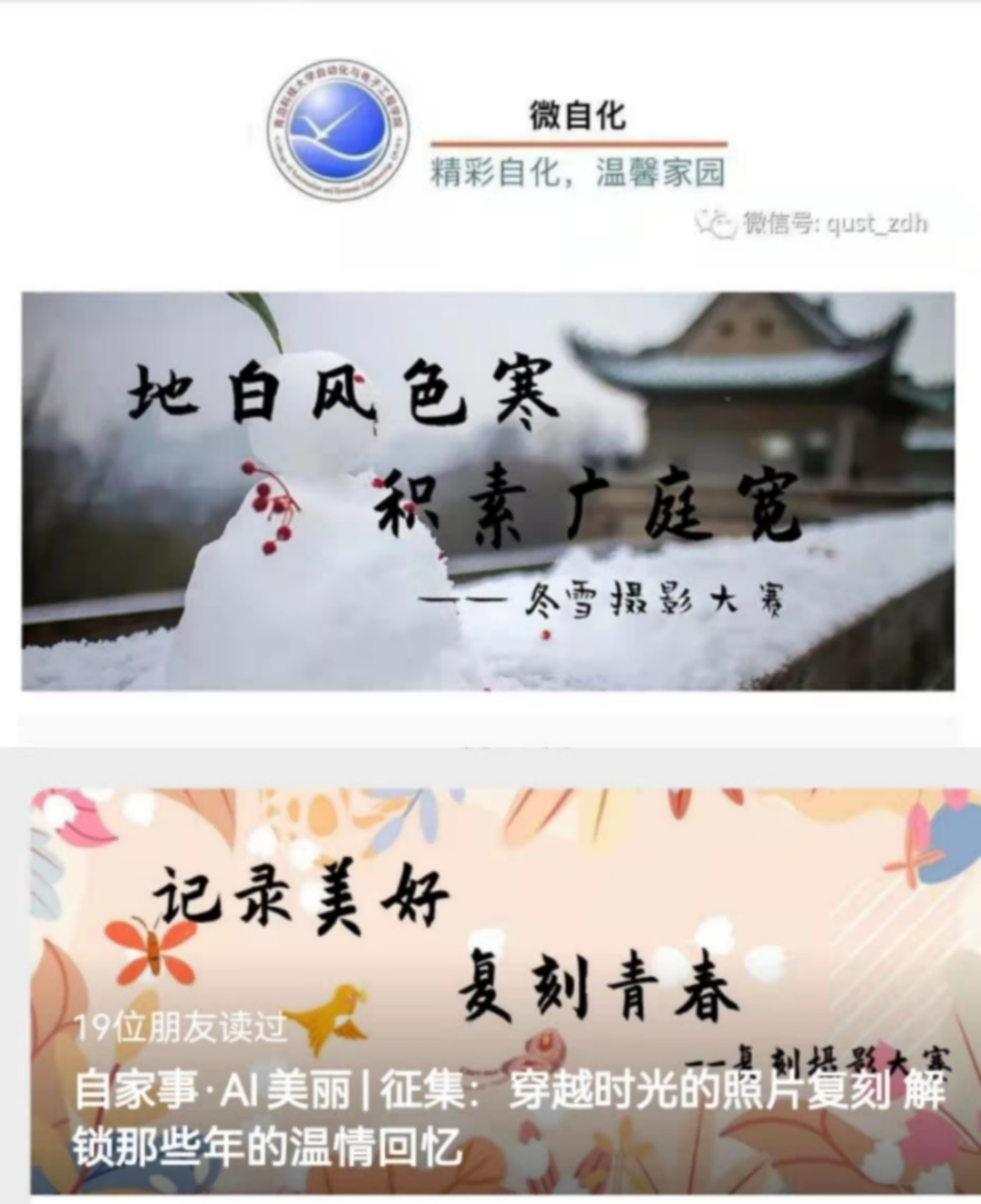 强身健体,丰富生活,“体育”“美育”同步开展。学院始终把学生的安全健康放在首要位置,以冬奥会为契机,号召学生假期参与“爱体育·迎冬奥”健康跑打卡,广播体操练习打卡,与冬奥健儿同运动等体育锻炼活动,促使学生养成良好生活习惯;同步开展“我和我的家乡”短视频/摄影大赛、“穿越时光”照片复刻大赛、冬雪摄影征集等美育活动,充实假期精神文化生活,提升学生审美水平。