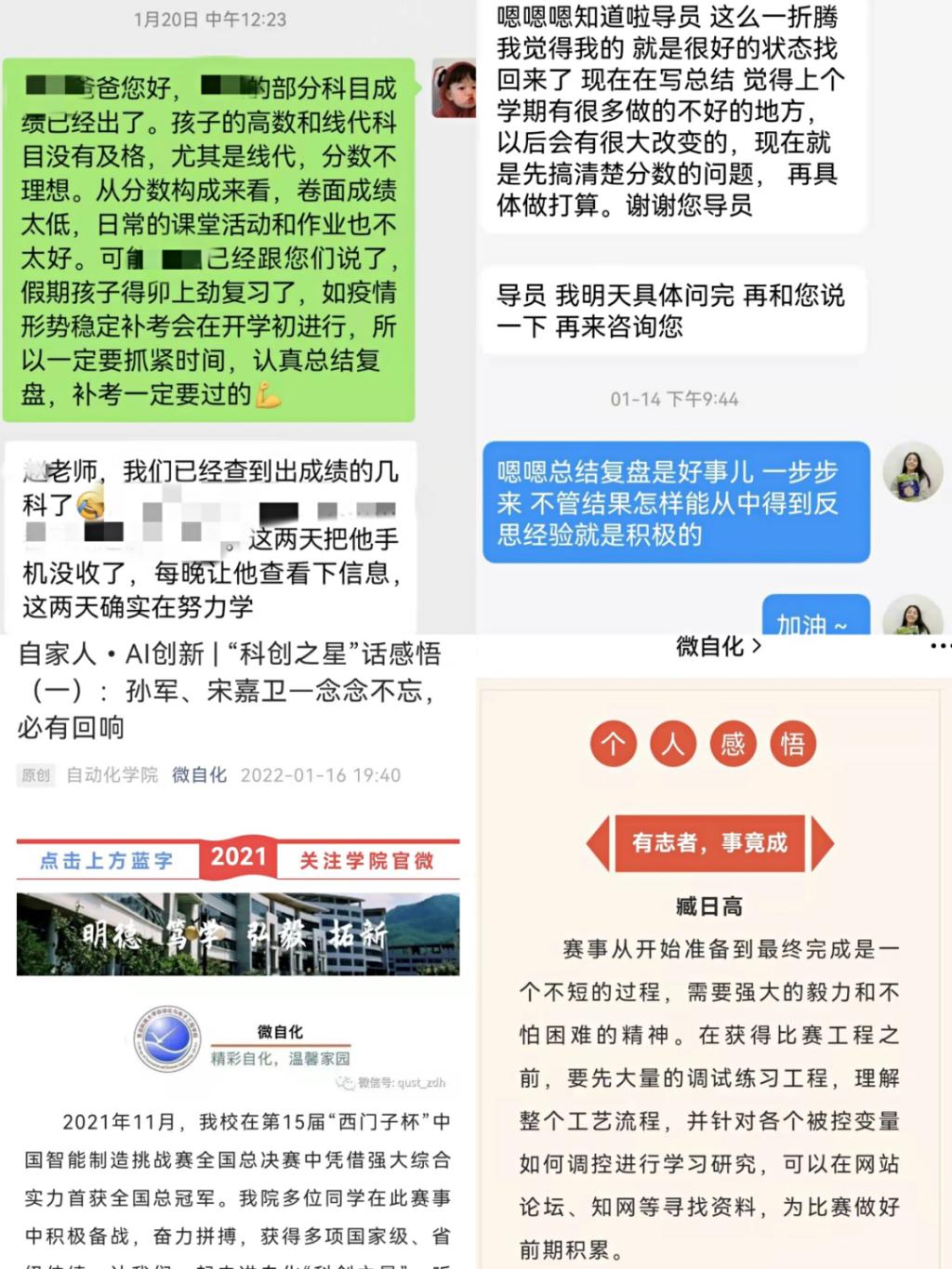 多方协同,强化意识,全面做好寒假规划。寒假离校前,结合疫情防控形势和学校相关通知要求,各年级辅导员、班主任通过年级大会、主题班会等形式,面向全体学生安排部署各项工作要求,引导学生抓好寒假这个“黄金弯道超车期”,做好上学期总结反思及寒假计划。同时凝聚家校共育合力,通过“微自化”公众号和各年级家长群在线发送《致笔趣阁 家长的一封信》,详细介绍学院寒假工作安排,并就安全教育、亲子沟通、学业发展等方面提出建设性意见,发放《笔趣阁 家校共育联系卡》,希望家长全面了解学生学习生活情况,认真倾听家长建议意见,力求家校共同做好人才培养工作。