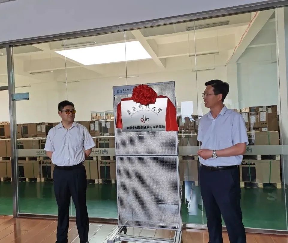 在师生和企业负责人的共同见证下,现场举行了大学生创新创业实习实践基地的签约揭牌仪式,马寒和赵梅梅分别代表学院和企业签署校企合作协议,徐华与袁春雷共同为实践基地揭牌。