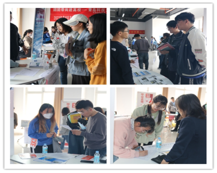 此次双选会共邀请到当地20余家各行业优秀企业,提供工作岗位400余个。用人单位工作人员与学生针对岗位需求、薪资待遇、职业发展等多个问题进行面对面交流,现场气氛热烈。周村区团区委书记钟星平,淄博基地负责人王锋业、学院党政领导吕德谦、刘慧明、曹梦龙等前往双选会现场,与用人单位进行交流沟通、洽谈合作,并针对性地向毕业生们提供职业规划和就业指导,解答学生目前在求职就业方面的疑惑。