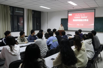 于11月16日在学院楼406举行“青春为笔,科教兴国”挑战杯经验分享会。王一帆作为优秀学姐向2023级学生代表分享经验,为参赛者提供指导与帮助。